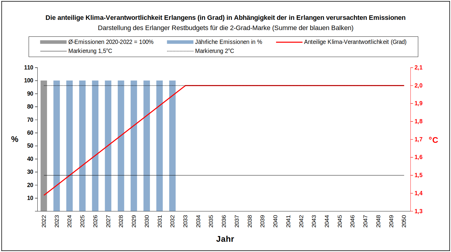 ►►► Sollten sich im Jahr 2023 keine drastischen Veränderungen ergeben, ist zu erwarten, dass das Erlanger Restbudget für das 1,5-Grad-Ziel im ersten Quartal 2024 erschöpft sein wird.